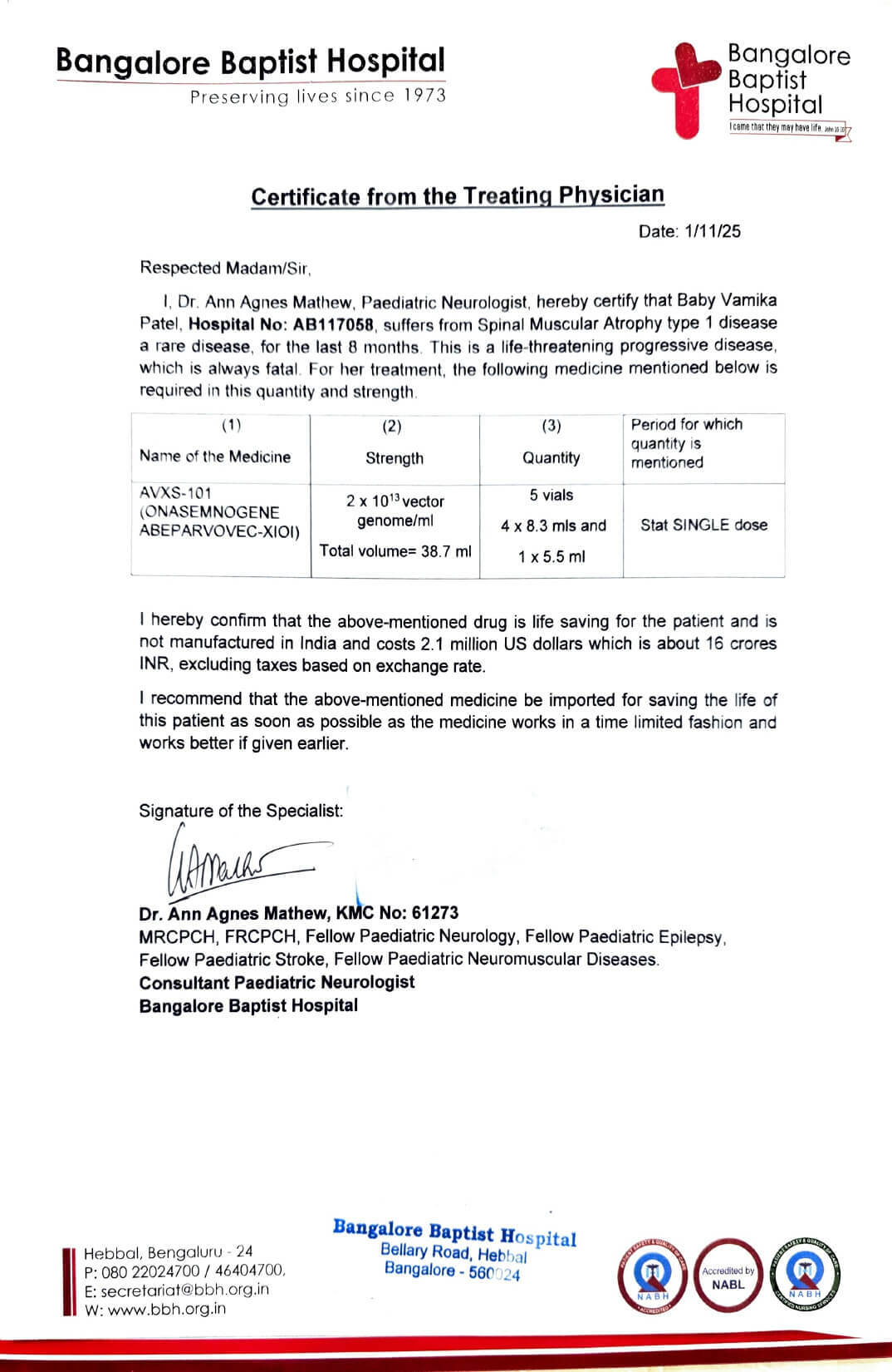 However, this miracle comes with an unimaginable price—₹16 Crores (USD $2 million). After months of desperate appeals and communication, Novartis has offered us an EMI-based installment plan, bringing down the immediate cost to ₹9 Crores.