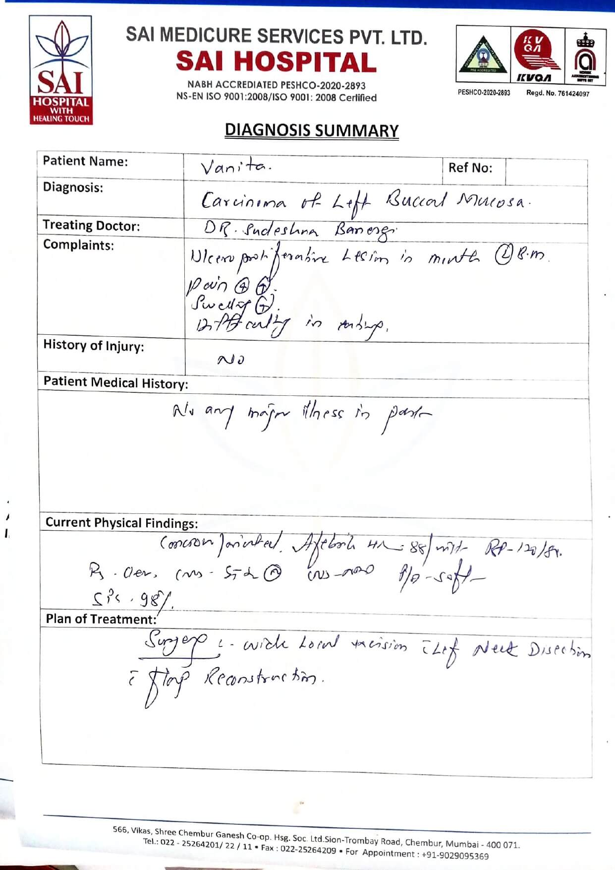 Vanita is a strong, kind, and hopeful person who dreams of returning to a normal life with her family. Your contribution can be the reason she gets that second chance. Any amount you can give will go directly toward her treatment and help us fight this battle more confidently.