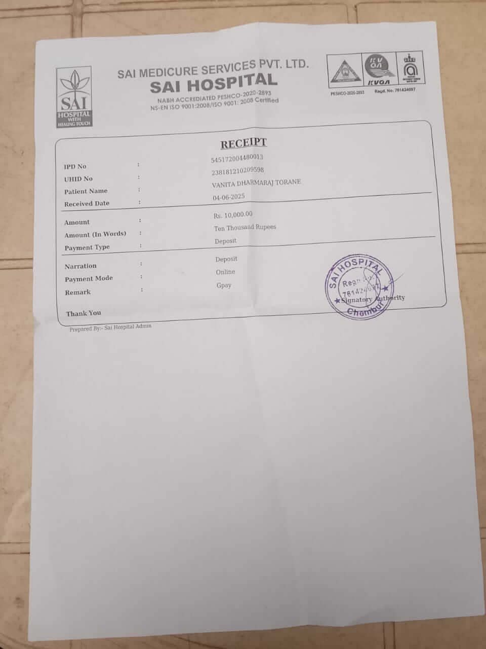 We need an additional ₹1,50,000 to continue her treatment without interruption. Unfortunately, our financial situation does not allow us to bear this cost on our own. We’ve already exhausted our savings and now find ourselves turning to kind-hearted individuals who may be able to support us during this desperate time.