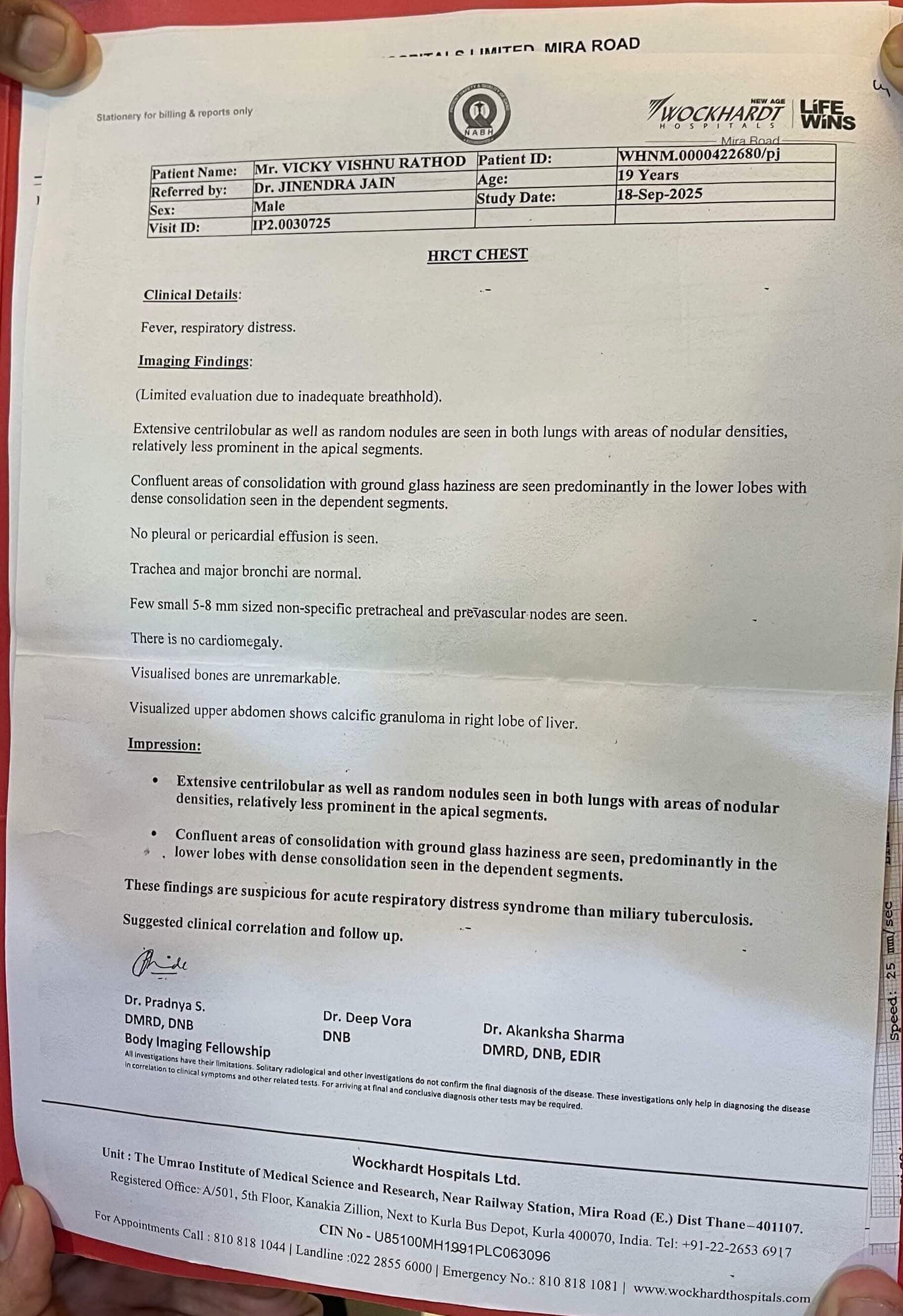 १० दिवसांपूर्वी, आम्ही त्याला जवळजवळ गमावले होते. त्याचा ताप थांबत नव्हता. तो नीट श्वास घेऊ शकत नव्हता. प्रत्येक श्वासाबरोबर त्याची छाती दुखत होती. डॉक्टरांनी सांगितले की तो मिलिअरी ट्युबरक्युलोसिस आहे, एक दुर्मिळ आणि धोकादायक प्रकारचा टीबी जो रक्तातून पसरतो आणि अनेक अवयवांवर, बहुतेक फुफ्फुसांवर हल्ला करतो. जेव्हा त्यांनी मला सांगितले तेव्हा मी गोठलो. टीबी असे करू शकतो हे मला माहितही नव्हते.