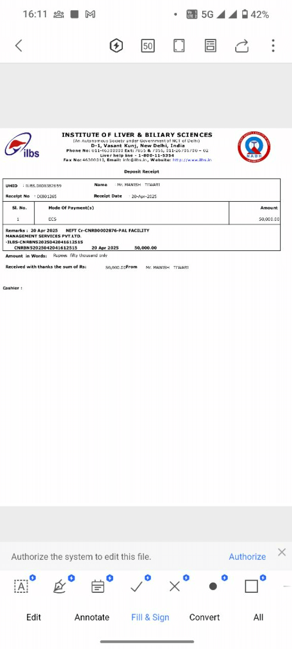 My name is Pawan Tiwari, and I am reaching out with deep hope and urgency to raise funds for my younger brother, Manish Tiwari, who is bravely battling liver failure. He is currently undergoing treatment at the Institute of Liver and Biliary Sciences (ILBS), Vasant Kunj, New Delhi, and doctors have advised an immediate liver transplant to save his life.