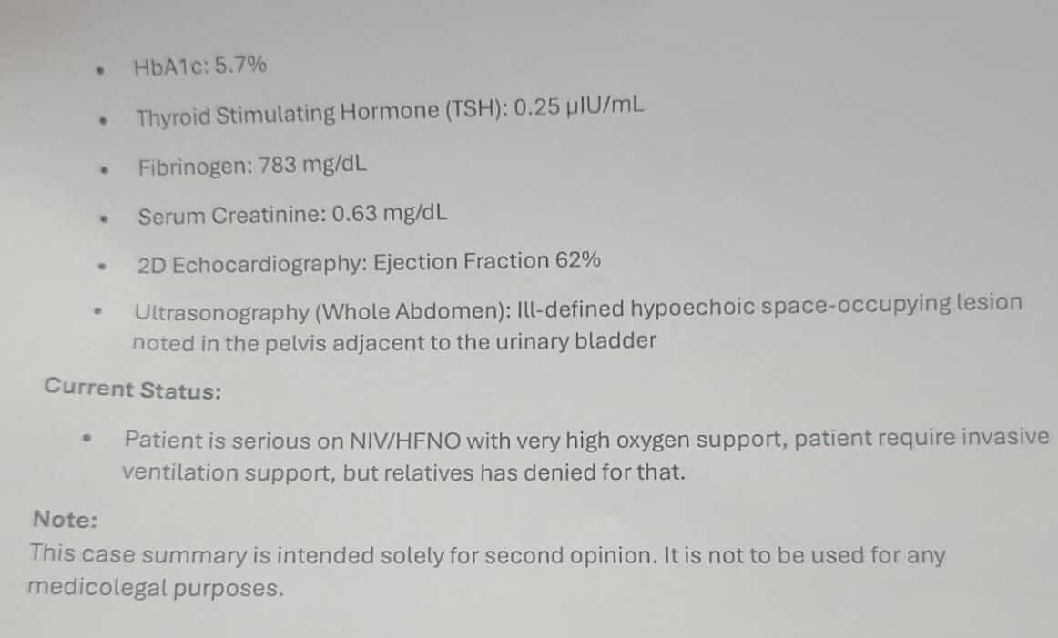 डॉक्टरों ने उनकी फेफड़ों में तरल पदार्थ का जमाव पाया, जिससे एक गंभीर संक्रमण हो गया। उन्होंने हमें उन्हें कोकिलाबेन धीरुभाई अंबानी अस्पताल (मुंबई) या मेडांता अस्पताल (गुरुग्राम) में उन्नत उपचार और संभावित लंग ट्रांसप्लांट के लिए भेजने की सलाह दी है।