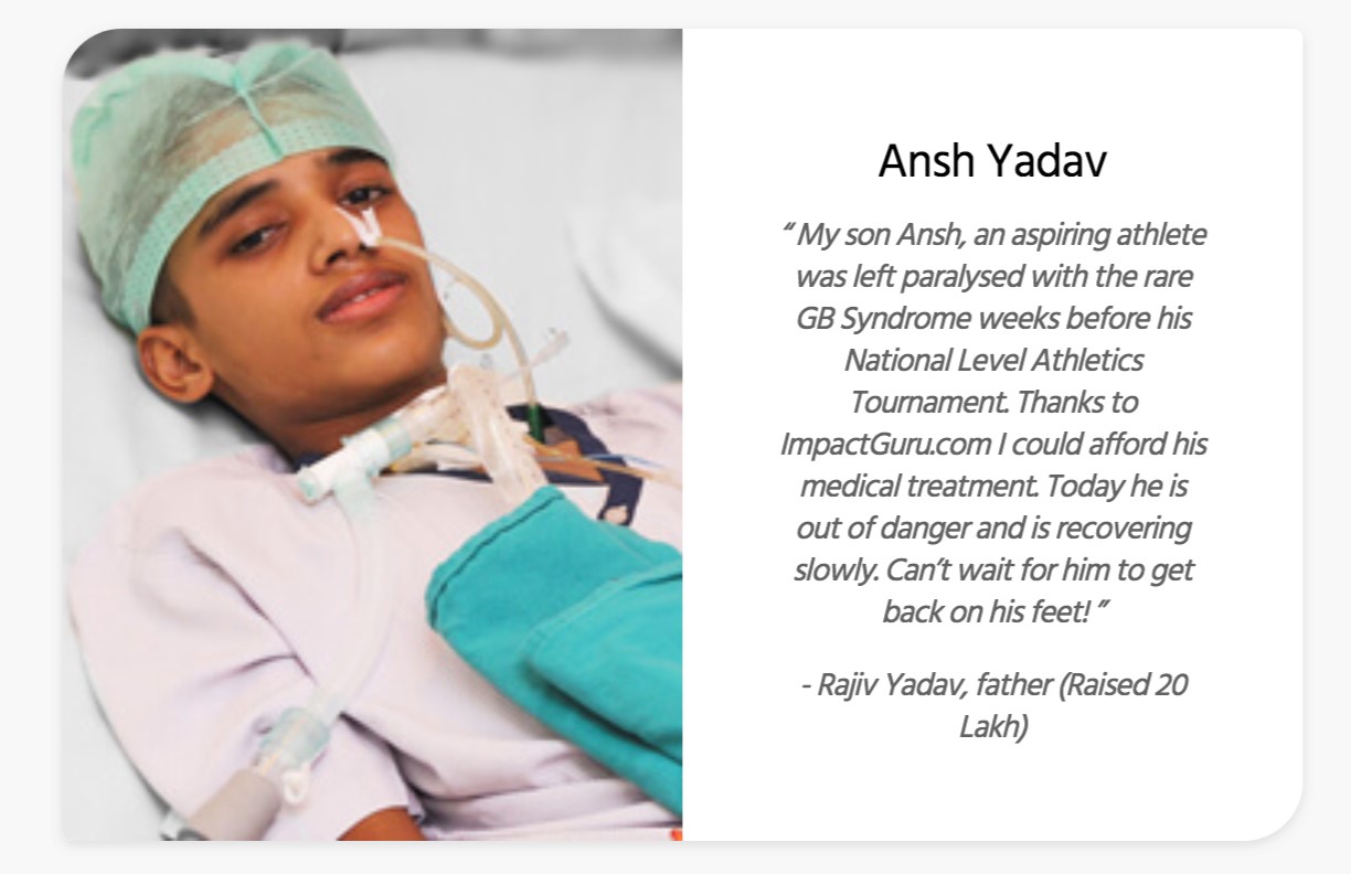 “Thanks to ImpactGuru I could afford his medical treatment. Today he is out of danger and recovering slowly. Can’t wait for him to get back on his feet.”